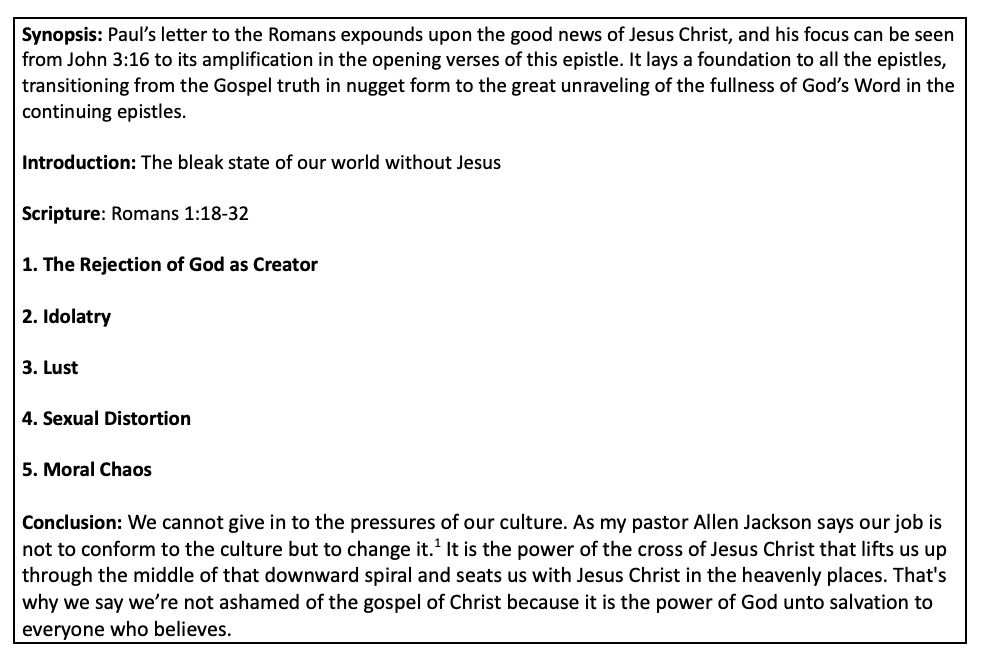 Dr. Douglas Moo said, We must consider 1:18 through 3:20 as a preparation for, rather than as part of, Paul’s exposition of the gospel of God’s righteousness. But it is a necessary preparation if what Paul wants to emphasize about this righteousness is to be accepted by the Romans. For only if sin is seen to be the dominating, ruling force that Paul presents it to be in this section will it become clear why God’s righteousness can be experienced only by humbly receiving it as a gift… by faith.”