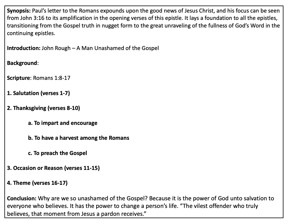 Don’t be ashamed of the Gospel of the cross! Well, today I want to resume our study of the book of Romans. This is one of the easiest books of the Bible to analyze and divide into its logical sections. This book is analytical. It is Paul’s reasonable explanation of the Gospel, and the first seventeen verses are his prologue. And even the prologue easily divides into sections.